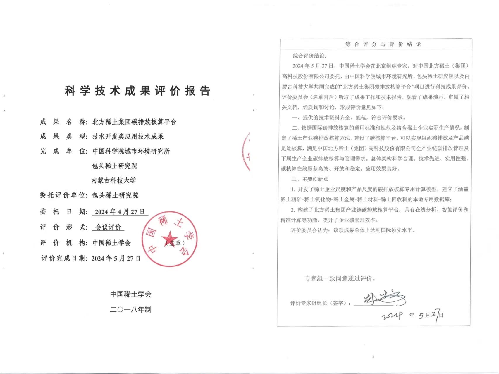 2024年5月27日,中国稀土学会组织来自高校、研究院所和稀土企业的多位专家,对米兰官网教师完成的“北方稀土集团碳核算排放平台”项目成果进行科技成果评价。