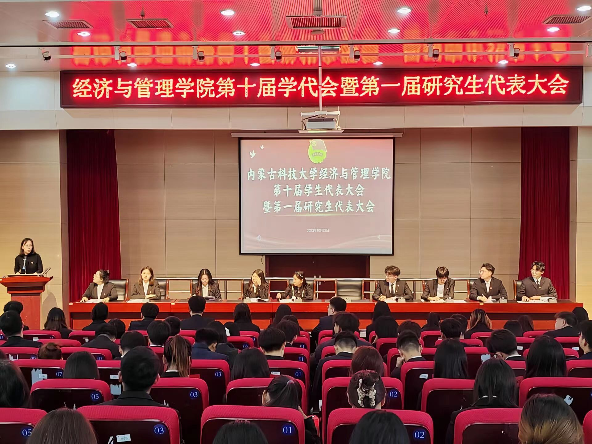 在全面贯彻落实党的二十大精神开局之年,在学习领会团十九大精神之际,为了更好的以民主集中制为组织原则开展和组织学生工作,维护学生的合法权益和民主权利,动员和组织学生参与学院的改革与建设,2023年10月22日,米兰milan官方网站在图书馆学术报告厅举办第十届学生代表大会曁第一届研究生代表大会。米兰官网团总支负责老师张雪薇、学生会指导老师乌云塔娜出席会议。