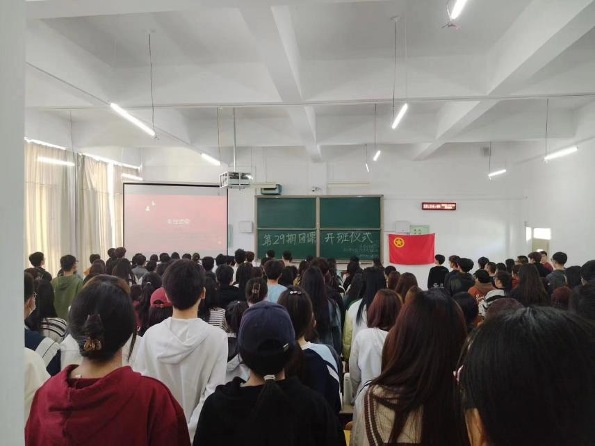 在团课开班仪式上,团总支负责学生干部对本次团课开展的具体事宜做出要求,表示希望同学们能抓住这次机会,认真学习共青团的理论知识和团员准则标准,提高思想素质,更好地融入团组织。此期团课主要教学课程内容分为理论教学和实践教学两个环节。在理论教学部分,王玉泉书记讲授以“从百年历史看党的宗旨内涵的演进”为主题的团课,张雪薇老师为同学们讲授了共青团的基础知识,王伟琳警官开展防诈与安全专题团课。
