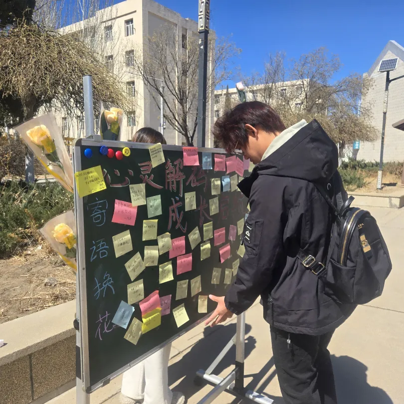 学院推出了一系列特色活动,学院心理辅导站和学生会以“认识情绪、表达自我、拥抱阳光”为主线,鼓励同学们以花为媒传递关怀,缓解学习生活中的焦虑情绪。这一活动成为校园内的亮丽风景线,得到了师生的广泛好评和积极参与。