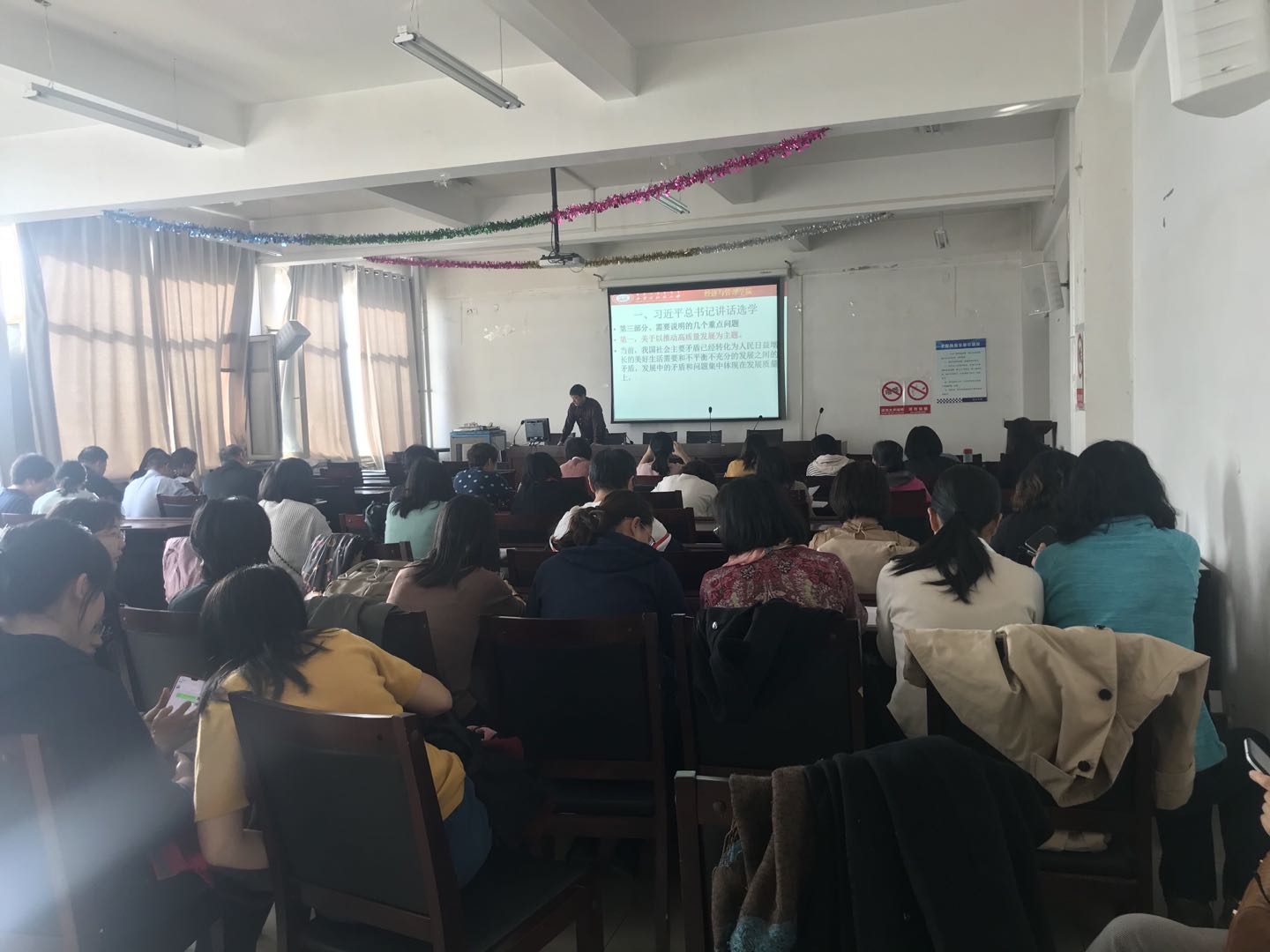 通过政治学习,号召全体教师牢记为党育人、为国育才使命,全面落实立德树人根本任务,主动作为,投身“新文科”建设,努力为教育强国作贡献。