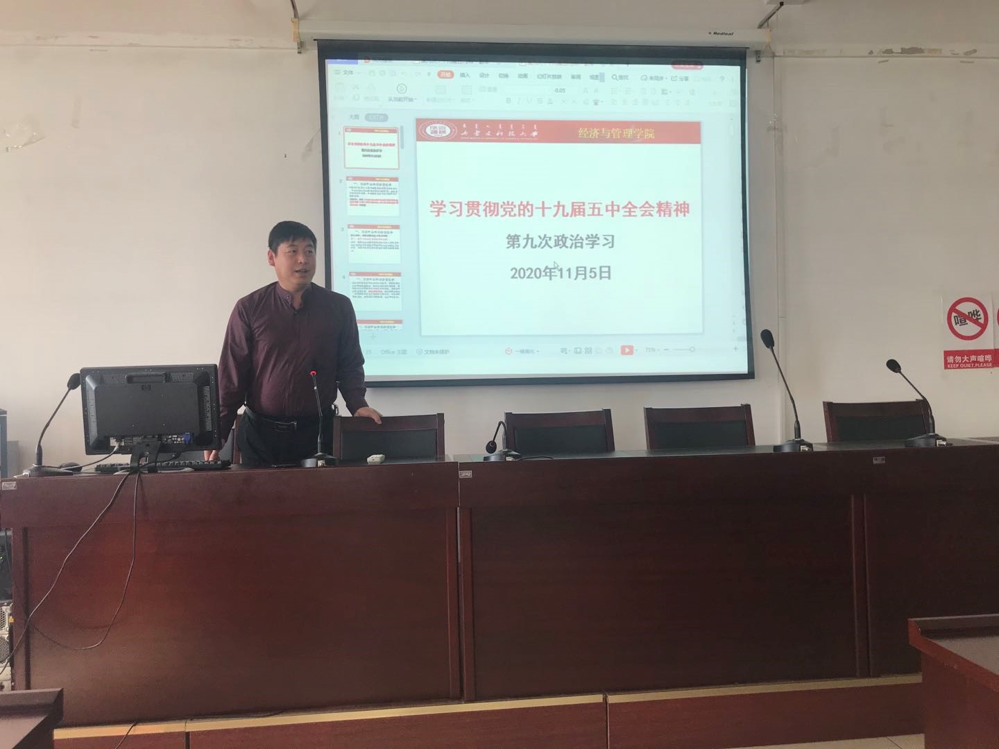 2020年11月5日,米兰milan官方网站党总支组织了全体教师政治学习。党总支书记马广辉做了题为《学习贯彻党的十九届五中全会精神》的专题讲座。重点学习了习近平总书记的讲话:关于《中共中央关于制定国民经济和社会发展第十四个五年规划和二〇三五年远景目标的建议》的说明。