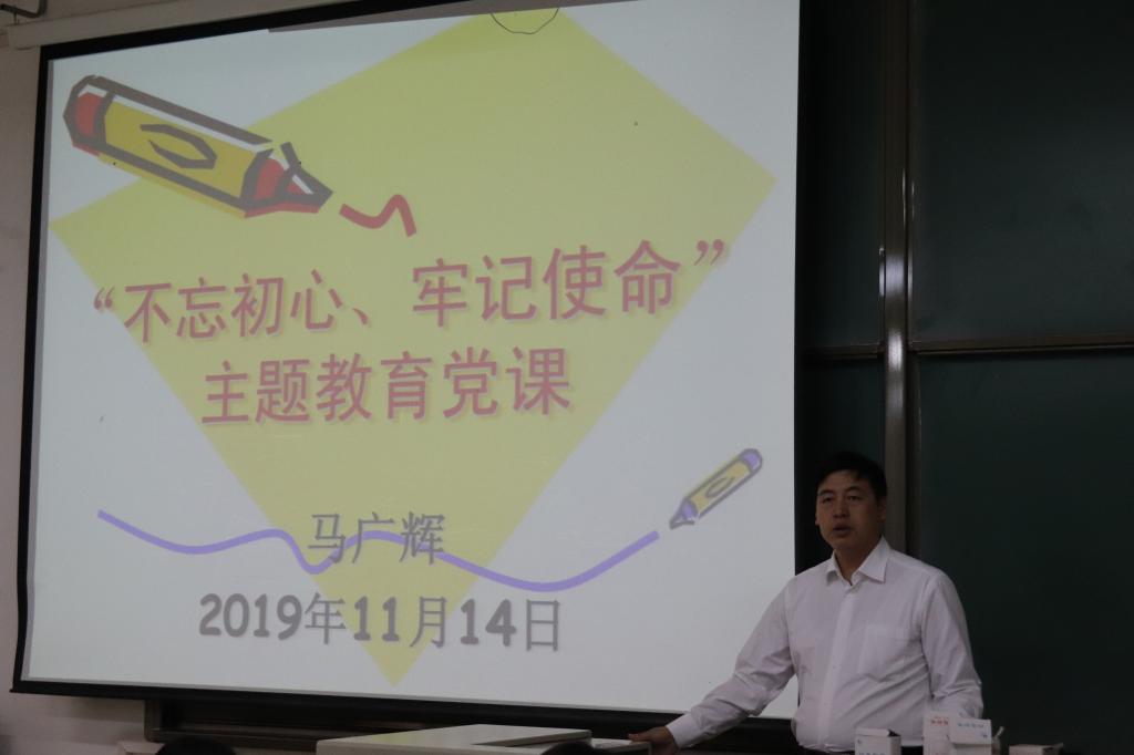按照学校党委主题教育统一安排部署,20191114日,米兰milan官方网站党总支书记马广辉同志在逸夫楼G101讲“不忘初心、牢记使命”教育专题党课。