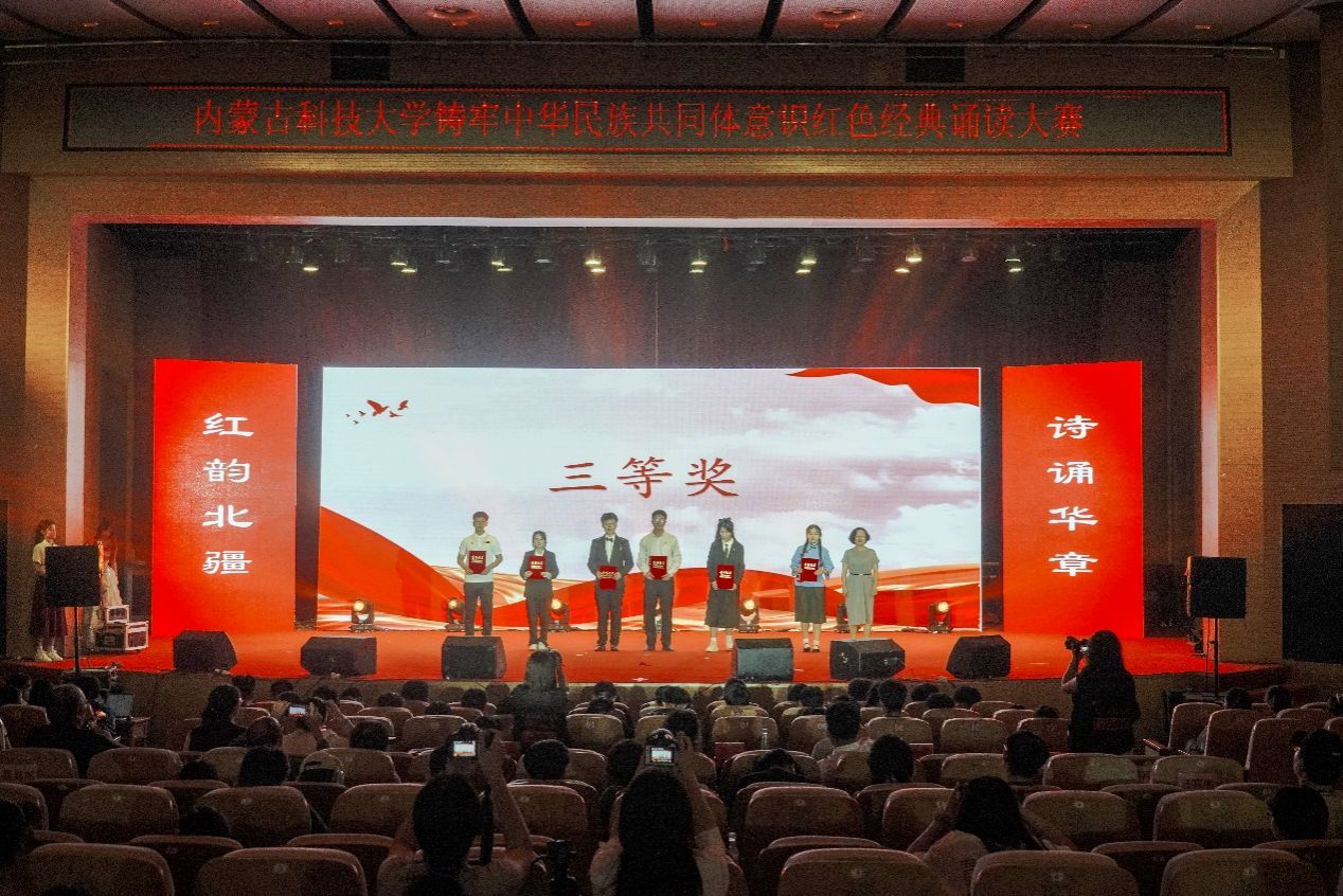 近日,米兰milan官方网站“红韵北疆 诗诵华章”铸牢中华民族共同体意识红色经典诵读大赛在校音乐厅举办。经过初赛、复赛层层选拔,共有11支队伍进入校级决赛。米兰官网2024级营销管理本科生杜文洁、张涛,2024级应用经济学研究生徐美彤分别获得一等奖、三等奖。