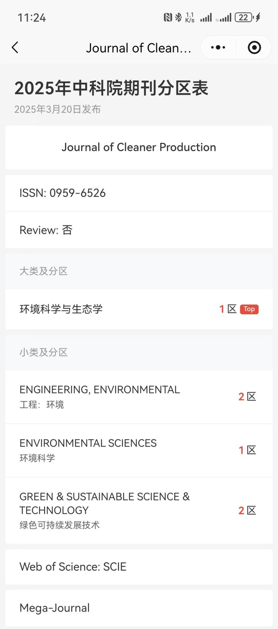 《Journal of Cleaner Production》于1993年创刊,是国际知名的工程环境与可持续发展领域期刊,由荷兰Elsevier出版社出版。该期刊涵盖了环境科学、工程环境和绿色可持续发展的各个方面,包括清洁生产和技术流程、环境及可持续发展评估、可持续发展的治理、立法和政策等。最新影响因子为10.0,为“中国科学院SCI期刊分区”一区TOP期刊。