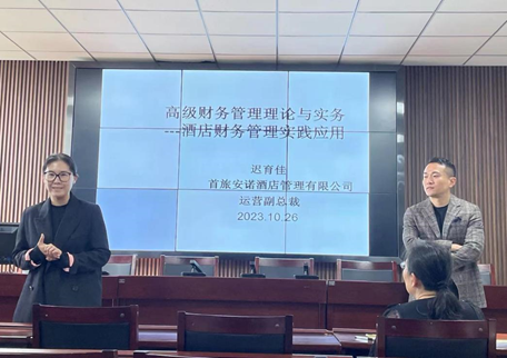 本次讲座有幸邀请到了首旅安诺酒店管理有限公司运营副总裁迟育佳,讲座由米兰官网工商管理系主任郝婷主持,参加本次讲座的还有苏利平教授、王晓红副教授、张芳卿副教授、昝玉文和尚丽花等教师以及2023级会计专硕研究生。