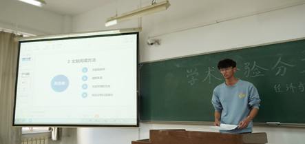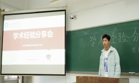 然后,来自2021级管理科学与工程的孙立峰学长从科研方法与个人规划两方面展开了分享,强调了研究生应该具备学习的自主性能力,积极提升学习效率。同时应该对未来读博和就业方面有较为清晰的规划,对每个阶段的具体任务有清醒的认知。